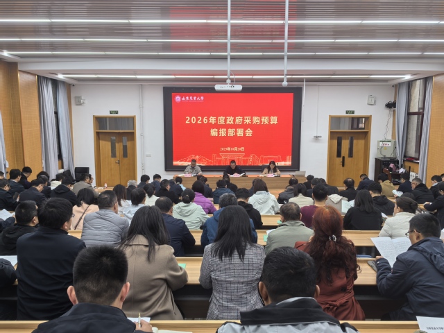 10月20日,2026年政府采购预算编报工作部署会在岱宗校区菽睿南楼106召开,资产管理处和财务处对预算编报和财政资金使用情况提出了具体要求。资产管理处处长栗成良、财务处副处长吴军参加会议并发言。